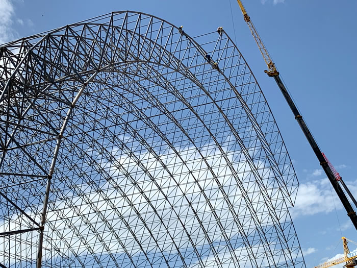 (2)网架加工前应对现场尺寸进行复测,确认无误后方可进行加工、安装;网架制作、运输、安装应遵守《空间网格结构技术规程》JGJ7-2010、《钢网架营口螺栓球节点》JG/T 10-2009、《钢网架营口螺栓球节点用高强度螺栓》 GB/T 16939-2016、《营口钢结构营口工程营口施工规范》 GB50755-2012、《营口钢结构营口工程营口施工质量验收标准》 GB50205-2020。